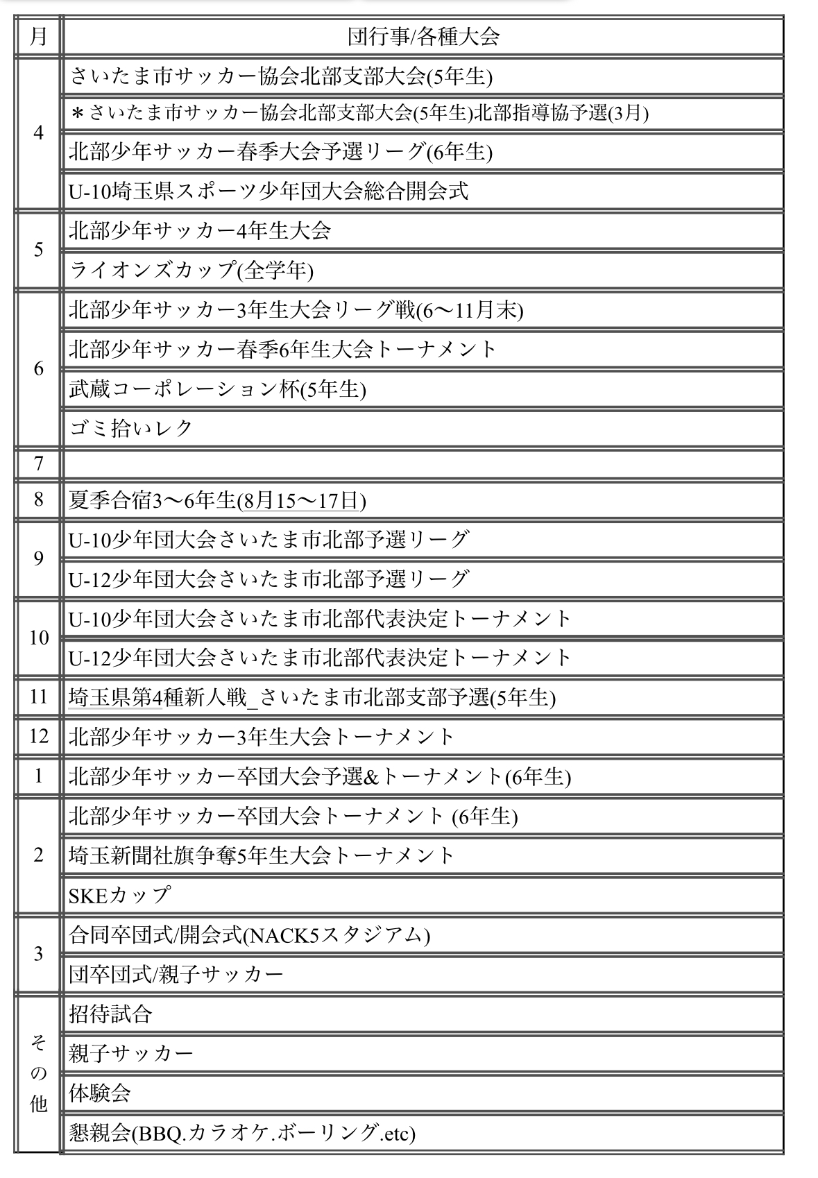 年間の予定になります。